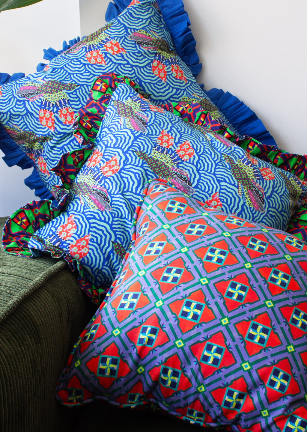 MADE TO ORDER – DUO FLY AWAY AND LIME SHUJA CUSHION
