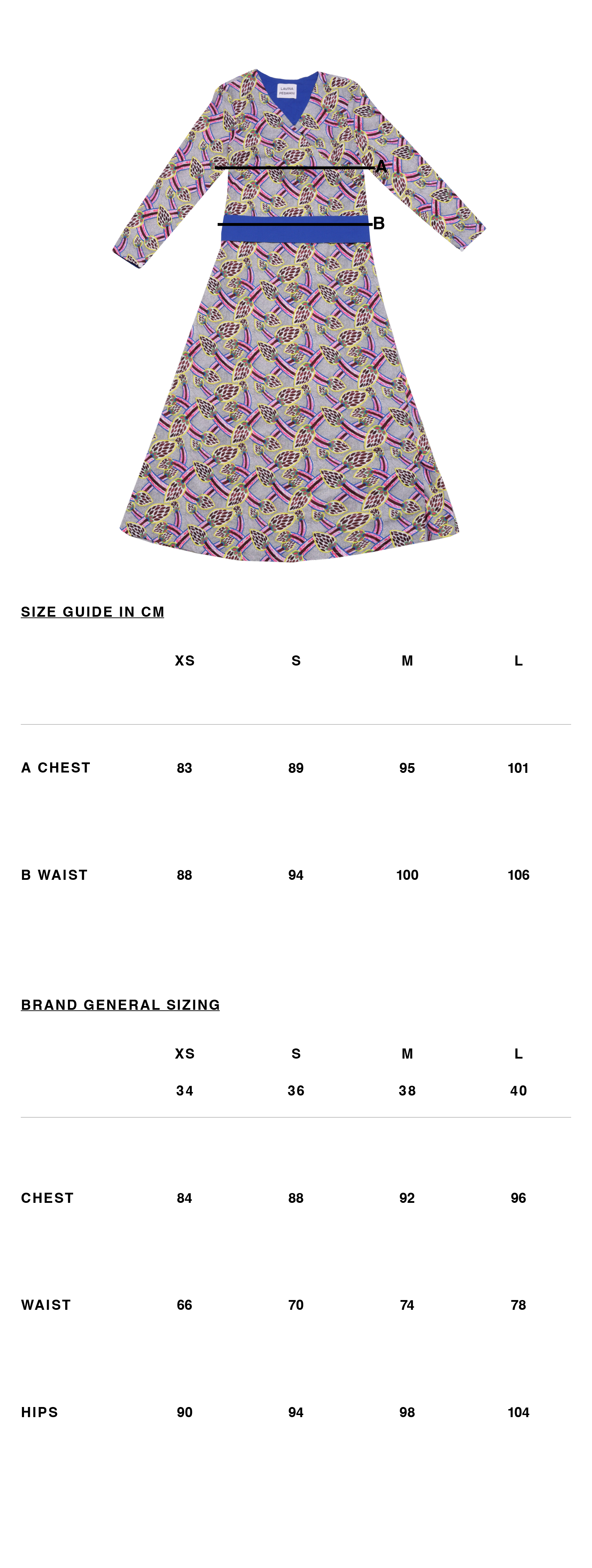 Alcachofa wrap dress with contrast vibrant blue belt and linning. Printed on high quality cotton poplin and sewn in Spain. Alcachofa in Spanish means artichokes which is what the print design reminded us to it.