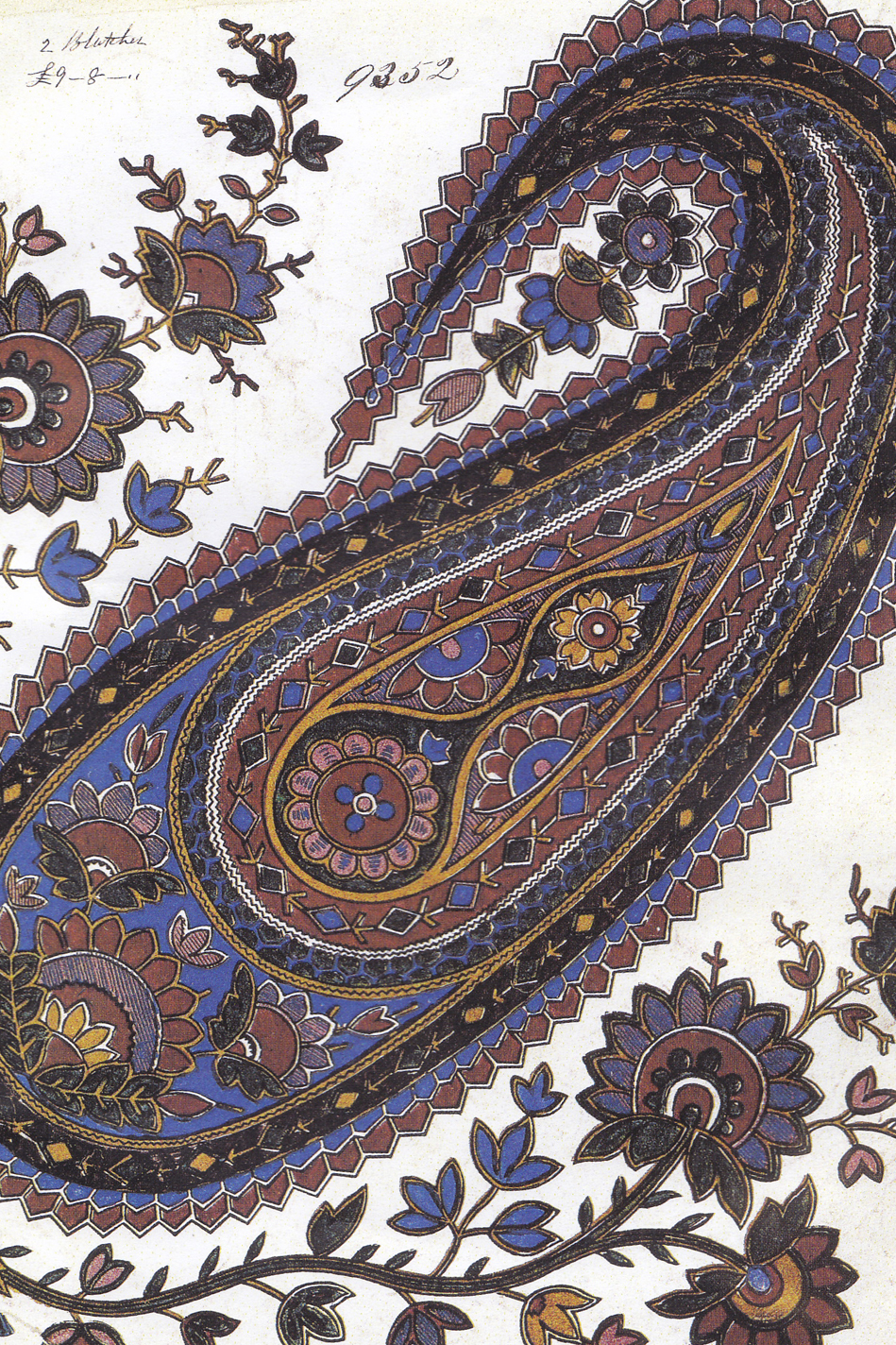 In Kashmir, under Mughal rule (1526–1756), the buta became a sign of luxury. Woven into fine wool from Himalayan mountain goats, the Kashmiri shawl became a treasured garment across cultures. By the early 19th century, European artisans began to replicate these textiles and in 1814, the town of Paisley in Scotland gave its name to the design that had already travelled so far. The loomwork evolved; the composition grew denser, more floral — yet the essence remained: a creative retelling of memory and craftsmanship across generations and continents.